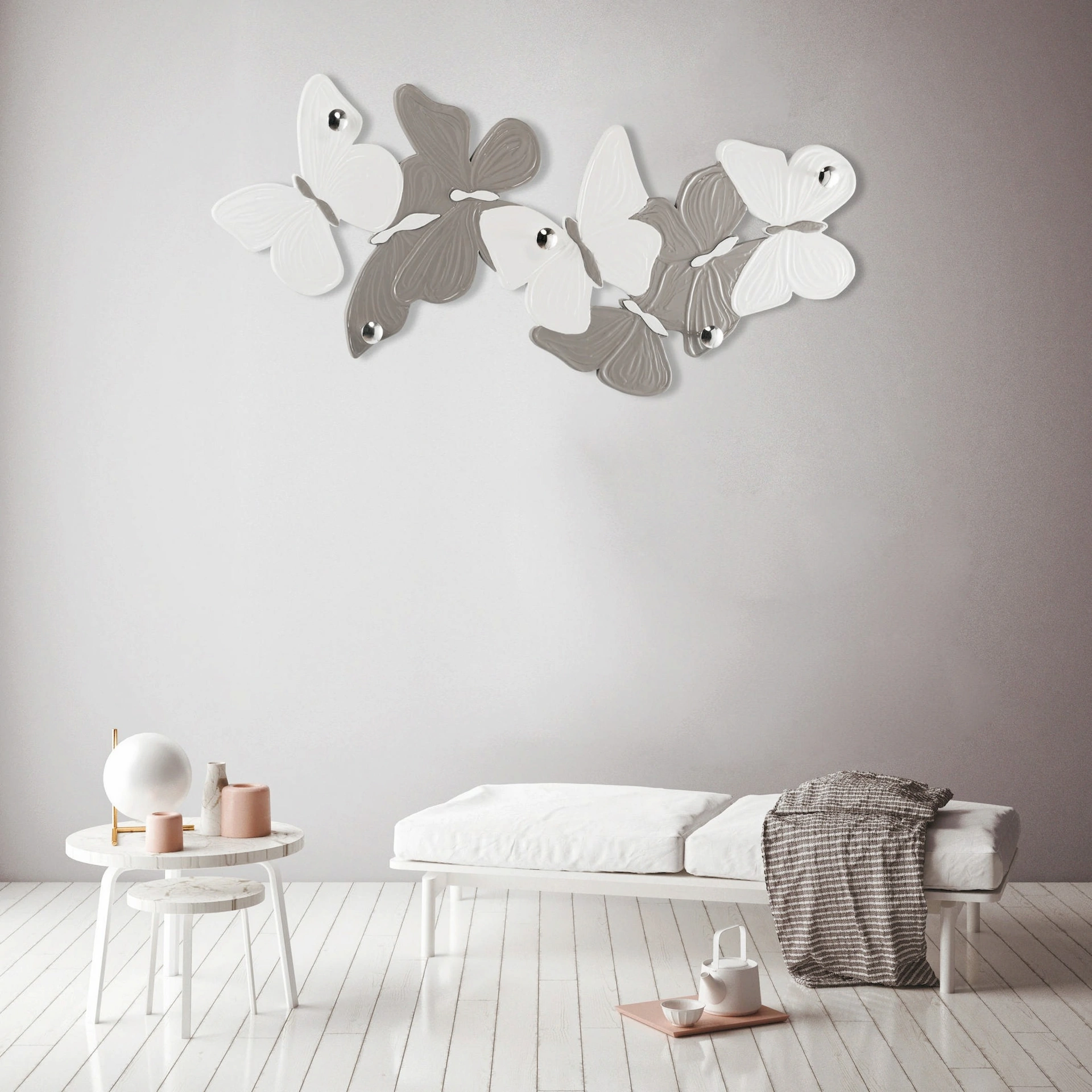 Le composizioni di charme del marchio Pintdecor valorizzano l'habitat con i loro colori e gusto, ricreando peculiari atmosfere arredative. Assai versatili e plurifunzionali, i Complementi design in laccato svolgono funzioni disparate: ultimano le doti di praticità e il valore estetico del locale. Appendiabiti Volteggio Delicato di Pintdecor in laccato: aggiungerà carattere e charme a un interno ammobiliato con mobili e complementi dai richiami design. Nel nostro punto vendita potrai toccare con mano l'eccellenza dei modelli di appendiabiti design in laccato della firma, proprio come questa proposta in foto.
