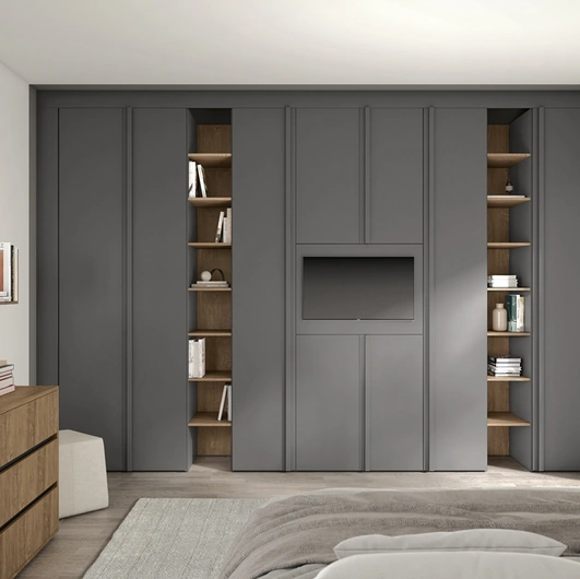 Contattaci per info e preventivi e potrai completare la zona notte che hai sempre sognato grazie ad una diversificata disponibilità di contenitori moderni come quest'armadiatura in melaminico in foto. Per completare al meglio il concept d'arredo, opta per le nostre proposte di Arredamento Casa delle migliori marche, letti, armadi e comodini differenti per classe, grandezza e materiale. Gli Armadi e le cabine armadio con ante battenti devono allestire la camera da letto garantendoti una perfetta organizzazione degli spazi e un'esclusiva ricerca stilistica. La zona notte è dedicata al relax, deve quindi risultare ben arredata e completa di mobili e complementi in grado di ricreare un'atmosfera sempre distensiva.