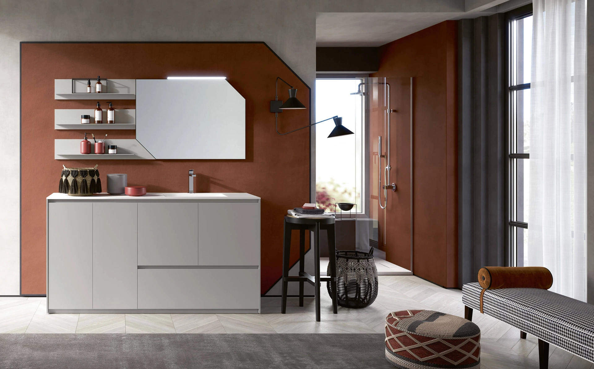 In showroom potrai visionare in prima persona le più belle composizioni arredative del noto e rinomato marchio: ti accoglieremo per arredare insieme il bagno di casa. Con le tipologie che proponiamo ti garantirai arredi fatti a regola d'arte e alla moda anche per il bagno, che va arredato attentamente, con funzionalità e stile. Rab Arredobagno produce soluzioni per l’Arredo Bagno moderno con mobili bagno a terra che uniscono linee ben studiate e grande ergonomia, come questo interno richiede. Il modello Mobile da Bagno a terra 3Punto0 119 di Rab Arredobagno in laccato opaco appartiene alla vasta gamma di arredi per il bagno del marchio, sempre di charme. Materiali tecnici e una ricca palette cromatica assicurano una progettualità massima e materiali pregiati resistenti a diverse sostanze.