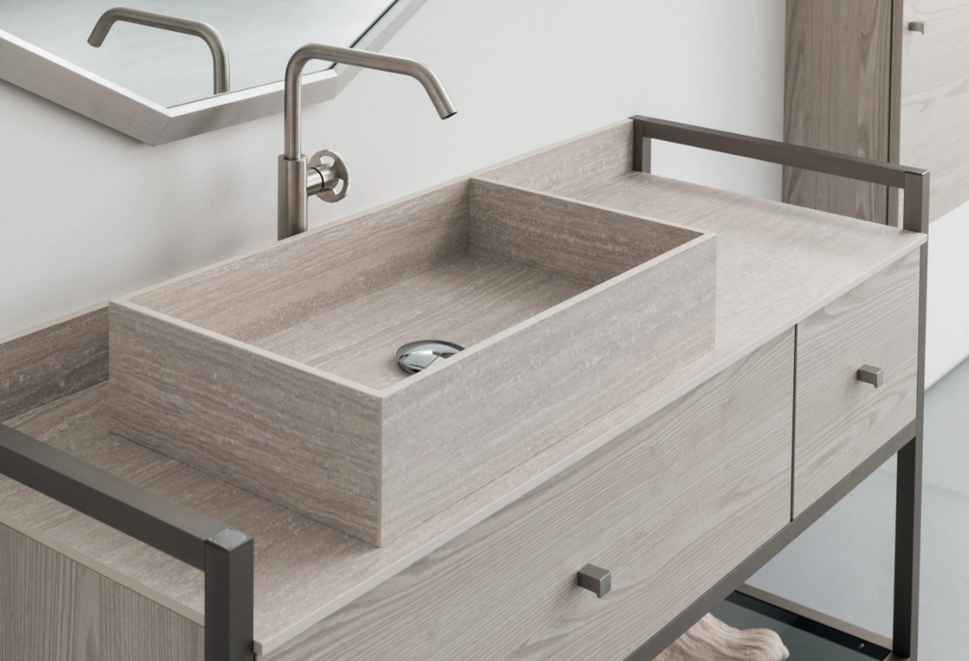 Nel nostro punto vendita scoprirai varie proposte di composizioni di Compab per personalizzare il luogo di casa dedicato alla cura personale. La sala da bagno al giorno d'oggi non è più unicamente un locale di servizio: alla sua progettazione viene dedicata la medesima cura degli altri ambienti domestici. Il modello di Mobile Bagno da appoggio B201 BD022 di Compab in melaminico ultima il locale unendo alla perfezione doti di eleganza con ergonomia e sicurezza. Da noi troverai non solo sanitari, ma anche tutti gli altri elementi accessori integrati nel concept per la stanza da bagno: scopri le più belle proposte di mobili bagno a terra. L’Arredo Bagno moderno dei più noti brand garantisce al giorno d'oggi elementi componibili per dare vita a ambienti di alto contenuto estetico e organizzati al meglio.