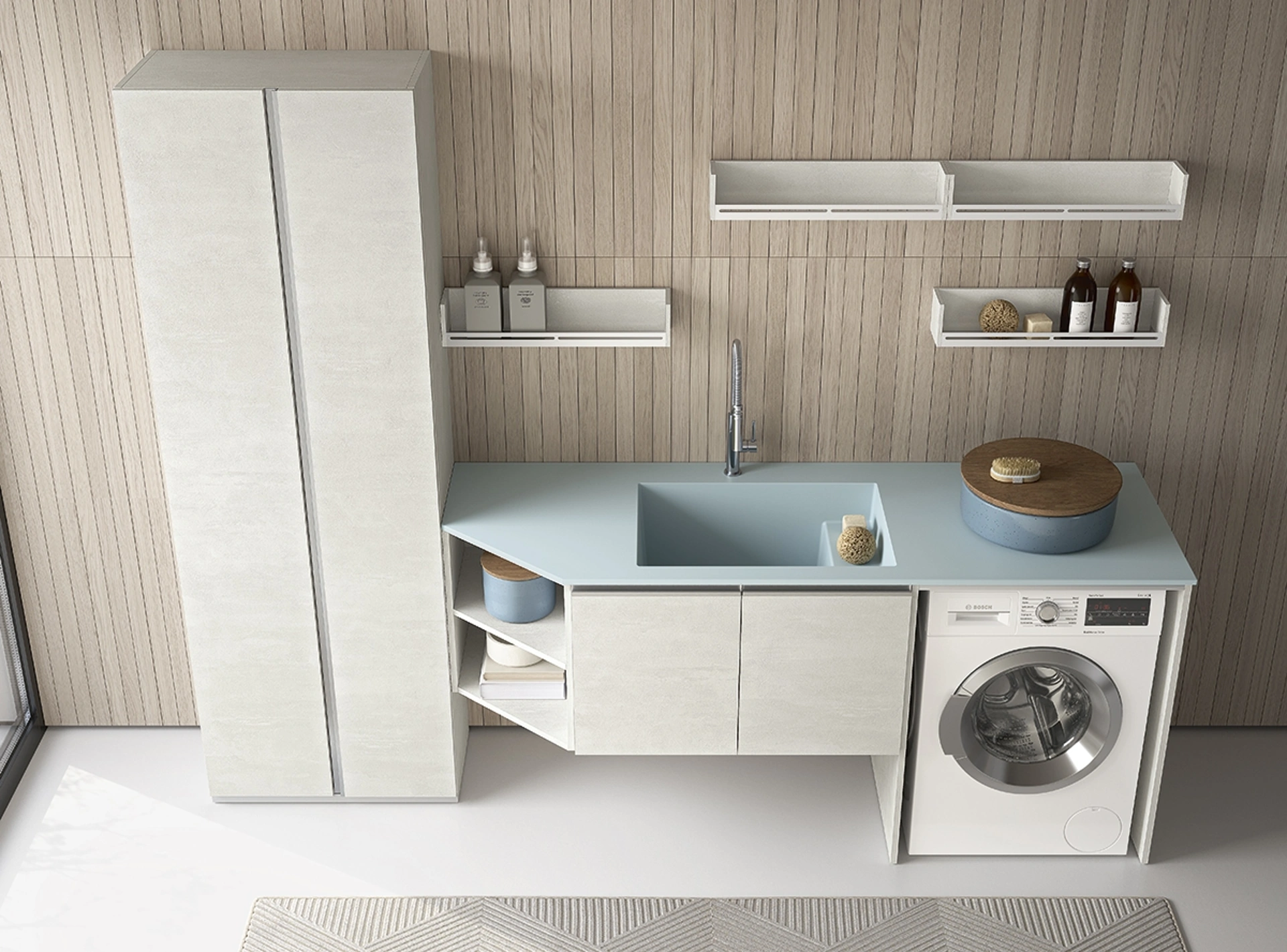 I bagni di casa cambiano sia per gusto che per dimensioni, quindi è imprescindibile che ognuno trovi la soluzione ideale per le proprie necessità. I colori, le finiture e glimoduli che il marchio propone per l’Arredo Bagno moderno con mobili bagno per lavanderia permettono di organizzare differenti contesti. Qui ti proponiamo il modello di Mobile da Bagno Lavanderie 504 di Rab Arredobagno in melaminico che impreziosisce in modo ottimale lo spazio garantendo la funzionalità. Ciascun progetto ottenuto con i prodotti del brand è caratterizzabile con mobili bagno per lavanderia di ogni genere, sempre in materiali durevoli e che resistano. Il bagno è il luogo destinato al relax e alle pratiche di cura personale, quindi va progettato mixando doti di funzionalità e stile.