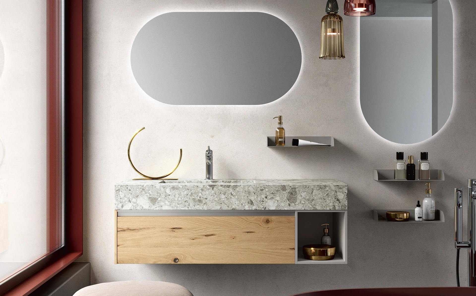 Il modello Mobile da Bagno sospeso Soul Wood 107 di Rab Arredobagno in legno qui proposto arreda il locale mixando creatività e design, con molta raffinatezza. Per merito della vasta gamma di soluzioni di Arredo Bagno moderno con mobili bagno sospesi di Rab Arredobagno, ogni spazio diventa esteticamente apprezzabile e confortevole. Il noto e conosciuto marchio presenta arredi per il bagno di ogni tipo, così da rendere l’arredo del locale veramente personalizzabile, agibile e versatile. Ricca offerta di forme e tonalità per le offerte di Arredo Bagno moderno con mobili bagno sospesi di Rab Arredobagno, soluzioni sempre destinate alla massima personalizzazione. Al giorno d'oggi la sala da bagno non è più solo un ambiente di servizio, anzi al suo arredo viene dedicata la stessa cura degli altri ambienti di casa.