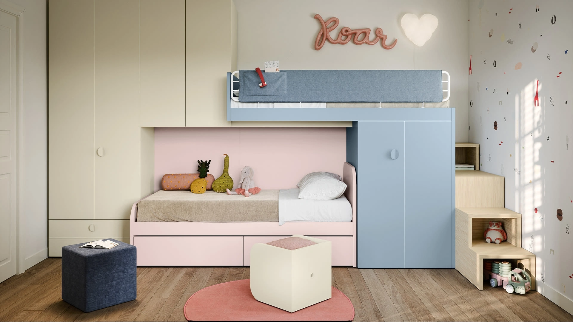 Nell'arredo della stanza dei giovani affidati a noi: nel nostro punto vendita presentiamo tutte le più originali composizioni arredative moderne per la loro camera. Se cerchi spunti creativi per decorare ottimamente la stanza dei tuoi figli, ti presentiamo la Cameretta con letti a soppalco di Nidi con finitura in melaminico. Porta contenuto estetico e cromie vivaci nella stanza dedicata ai bambini con questa soluzione, una tra le Camerette a soppalco per bambine di Nidi. Nidi propone una ricca gamma di elementi accessori da comporre su misura: troverai letto, armadio, scrivania, sedie e librerie.