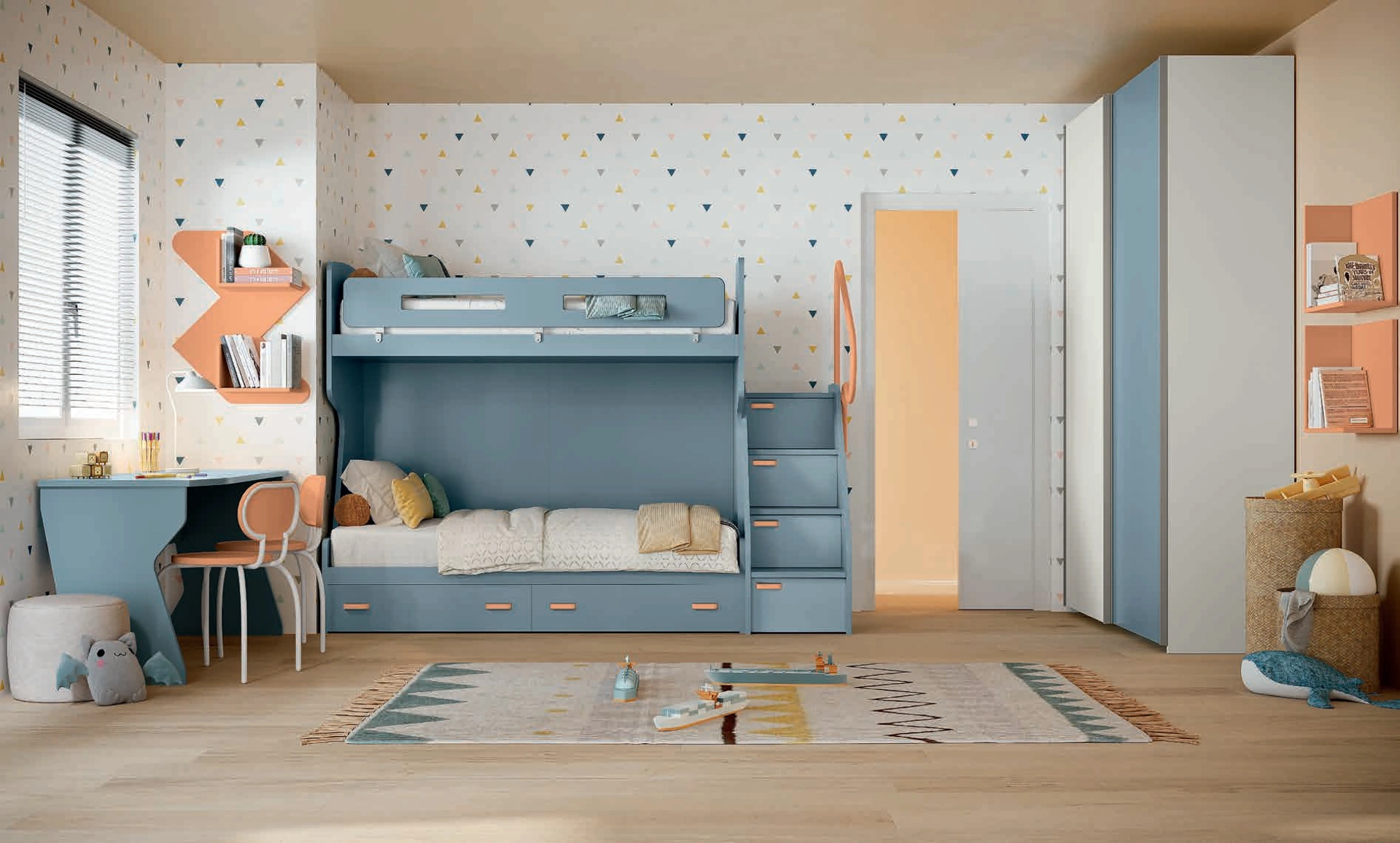 Se cerchi idee creative per progettare perfettamente la stanza dei tuoi figli, ti presentiamo la Cameretta Volo Kids C034 di Colombini Casa con finitura in melaminico. Colombini Casa offre un ricco catalogo di accessori da accostare su misura: troverai letto, armadio, tavolo da lavoro, sedie e librerie. Porta estetica e tonalità vivaci nella stanza dedicata ai bambini con questa soluzione, una tra le Camerette con letti a castello per bambine di Colombini Casa. Nell'arredo della stanza dei giovani affidati a noi: nel nostro punto vendita presentiamo tutte le più originali composizioni arredative moderne per la loro camera.