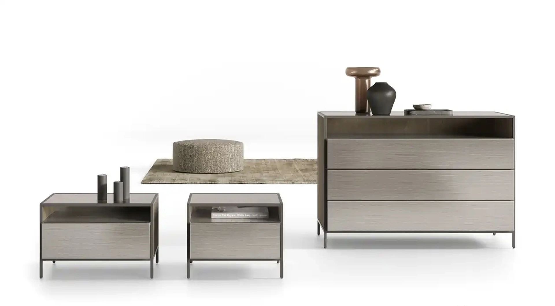 Il Gruppo Notte Frame di Moretti Compact Giorno Notte è una delle più esclusive soluzioni capaci di apportare un accento di stile in più alla zona notte, grazie a materie di pregio. I Comodini, comò e gruppi notte possono essere coordinati al letto e al guardaroba oppure possono essere in voluto contrasto con essi: la scelta si baserà sulle vere disponibilità di spazio e sulla ricerca di un armonioso effeto finale. Valorizza i tuoi locali garantendoti molta praticità, spazio utile e uno stile unico!.