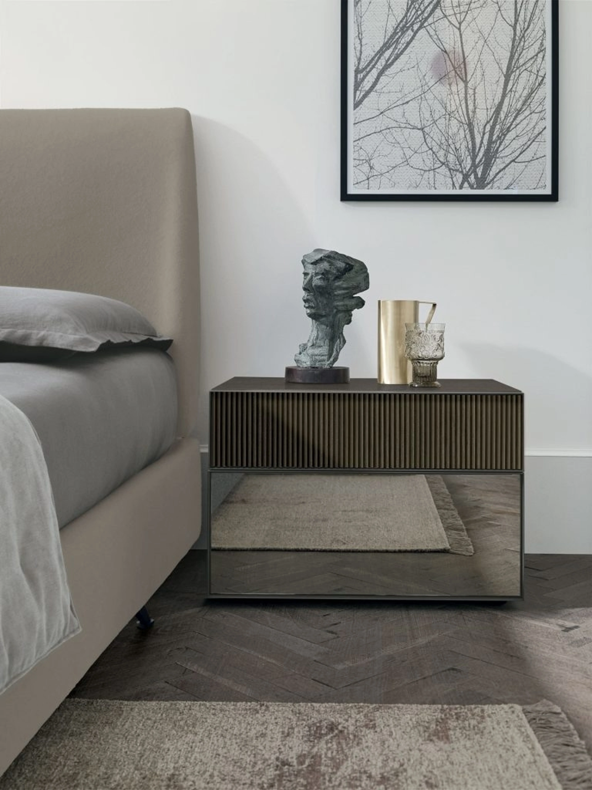 La zona notte contiene anche i Comodini: arredi contenitivi d'uso quotidiano che danno modo di sistemare oggetti e avere a disposizione superfici per appoggiare per vari utilizzi. Valorizza i tuoi spazi scegliendo composizioni di pezzi coordinati o ricrea eleganti abbinamenti di stile e cromie per merito del catalogo di mobili ed elementi accessori per la zona notte che proponiamo, come il modello in laccato opaco presente in foto, anche realizzabili su misura. Con i nostri gruppi notte design dell'azienda Tomasella, leader dell’Arredamento Casa per la zona notte, potrai creare la zona notte che hai sempre sognato.