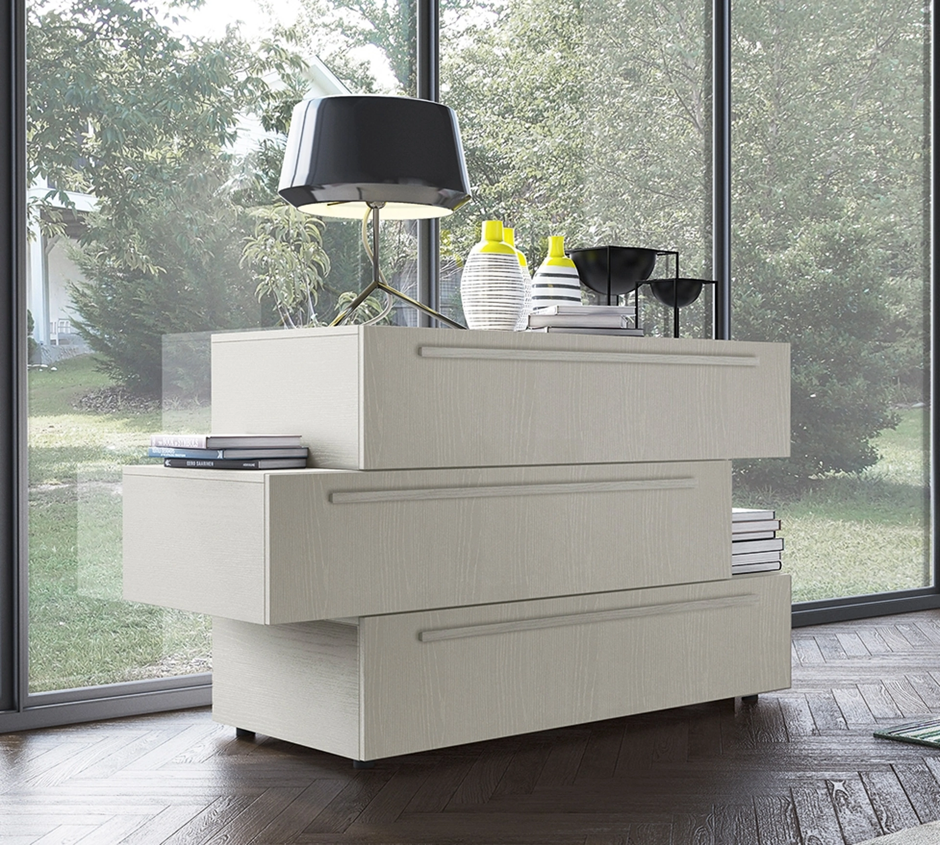 I Comodini sono mobili e complementi in grado di ultimare la camera garantendo uno spazio di appoggio certamente utile e eclettico. Ti chiedi come abbinare letti, armadi e comodini? Con il modello di Colombini Casa presente in foto avrai un mobile studiato per uno spazio dai richiami moderni.