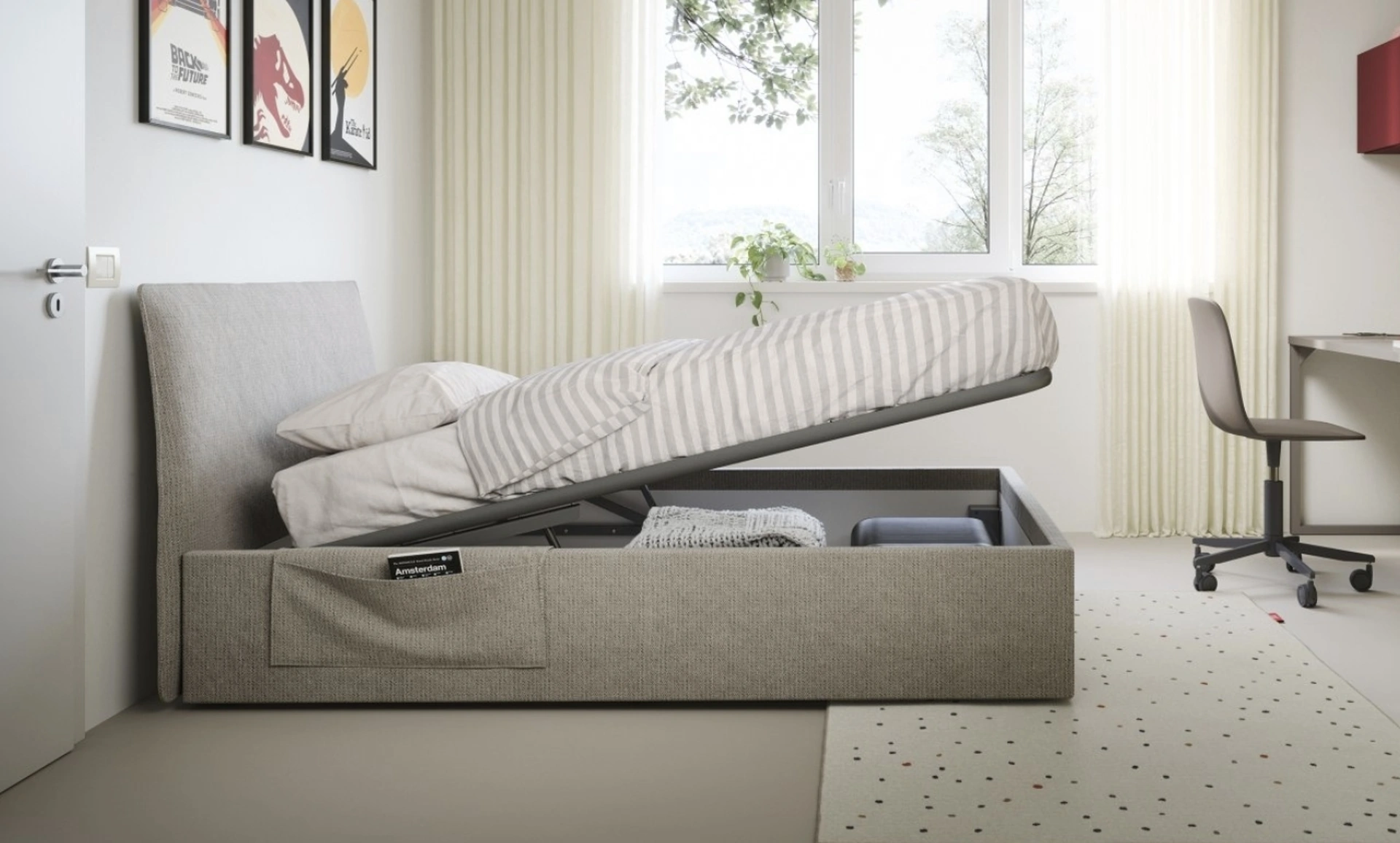 Scopri di più sul modello in tessuto in foto: contattaci per qualsiasi info compilando il form qui sotto. La cameretta dei bimbi è necessario che preveda tutto il necessario per garantire un ambiente confortevole, in cui sono presenti i letti moderni come questo. Una soluzione che rispetta le direttive di sicurezza indispensabili per organizzare l'ambiente dei piccoli.
