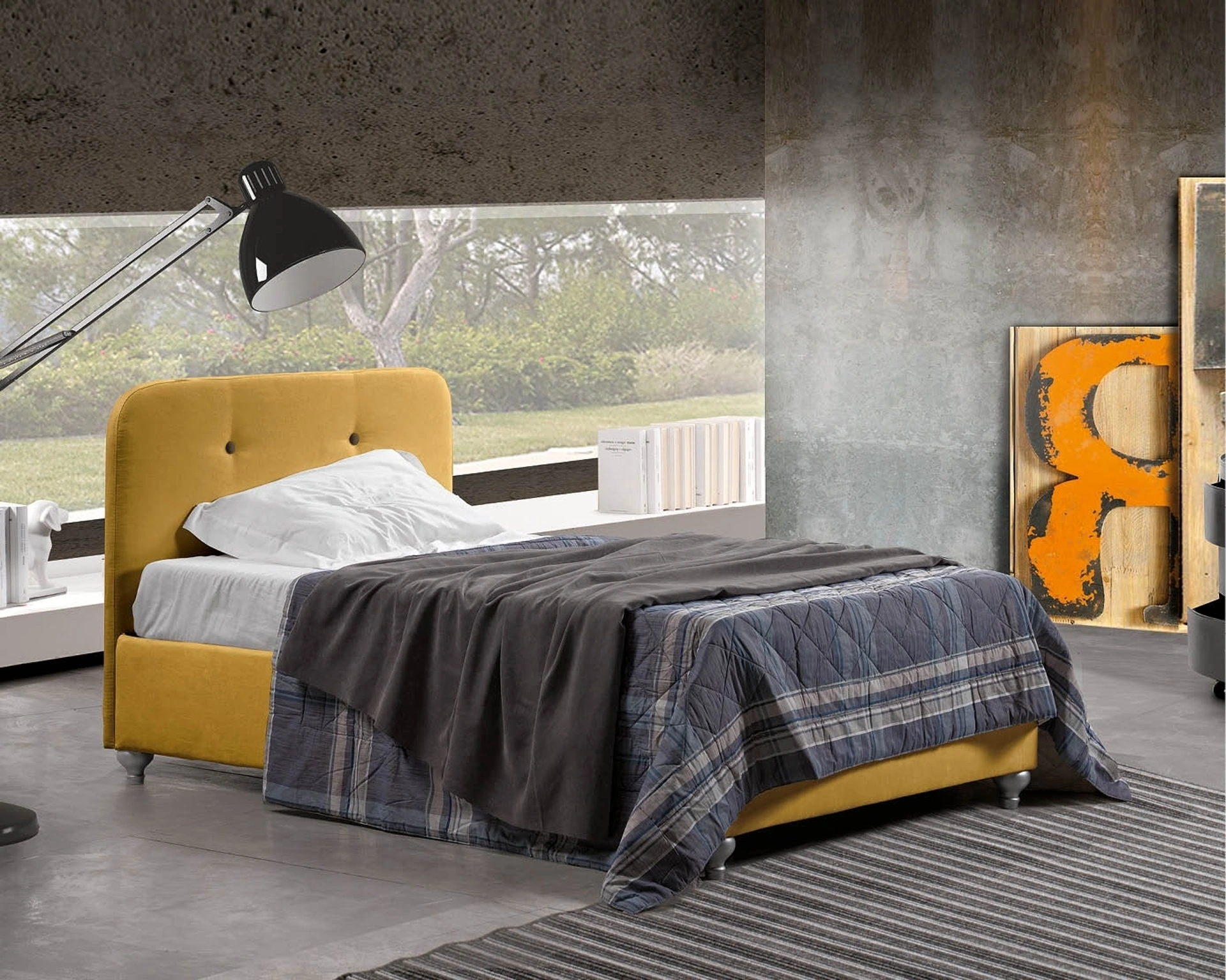 Contattaci e scopri di più sulla nostra linea di Letti singoli in tessuto: arreda la stanza dei più piccoli come l'hai sempre immaginata. Se desideri mobili e complementi moderni, il letto singolo nell'immagine fa al caso tuo: #appartiene alla@# nostra linea di letti singoli imbottiti. Il Letto singolo Orione di Lettissimi nell'immagine è ideale per completare al meglio la cameretta dei tuoi figli, abbinandosi alla perfezione con armadi e comodini, accessori e quant'altro.
