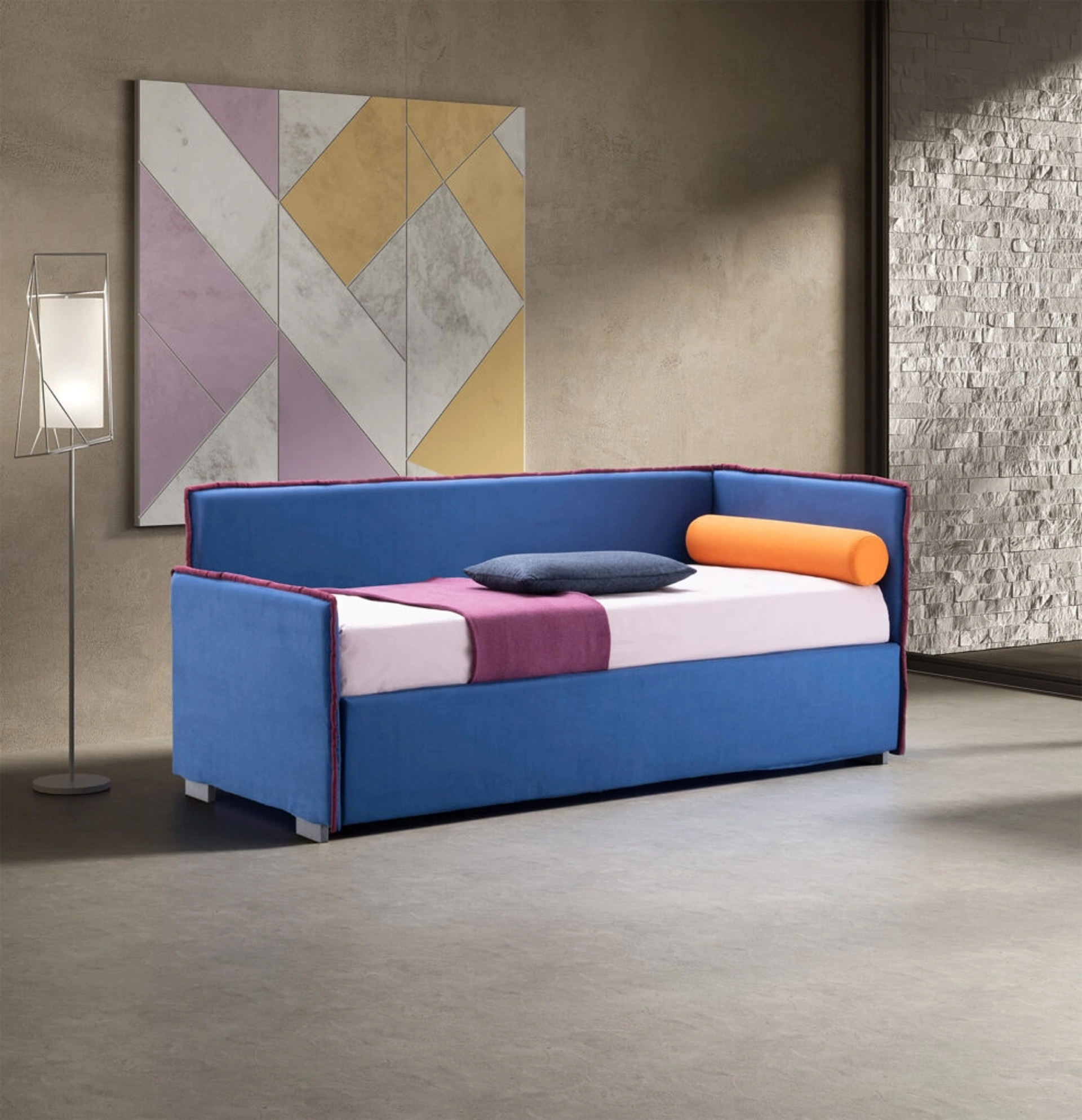 Un ricco catalogo di letti moderni in tessuto ti aspetta: il brand Stilfar Italia propone svariate versioni di letto, che rispondono sempre alle necessità dei bambini. Ottieni informazioni sul Letto singolo Tramonto di Stilfar Italia nell'immagine: è la soluzione per creare al meglio un ambiente accogliente, bello e ben organizzato, ideale per i tuoi figli. I Letti singoli con contenitore per la stanza dei più piccoli disponibili nel nostro showroom risolvono qualunque problematicità di spazio e praticità, assicurando al contempo un design unico.