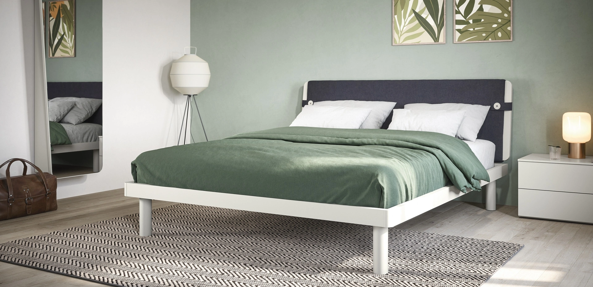 Nel nostro sito troverai le proposte più valide delle migliori marche specializzati nell'arredo per la camera da letto, con un’ampia possibilità di personalizzazione in quanto a tonalità e abbinamenti, accessori e molto altro. La camera da letto è il luogo di casa che più rispecchia la personalità di chi la utilizza, locale per eccellenza dedicato al relax, alla distensione e alla riservatezza. Se vuoi assicurarti l'agio più totale nei tuoi momenti di riposo, scegli i Letti matrimoniali moderni in melaminico come il modello visibile in foto. Il Letto matrimoniale con testiera Suez di Cinquanta3 è una tra le più esclusive soluzioni della firma, specialista del riposo, capace di assicurare funzionalità, comfort e un design unico.