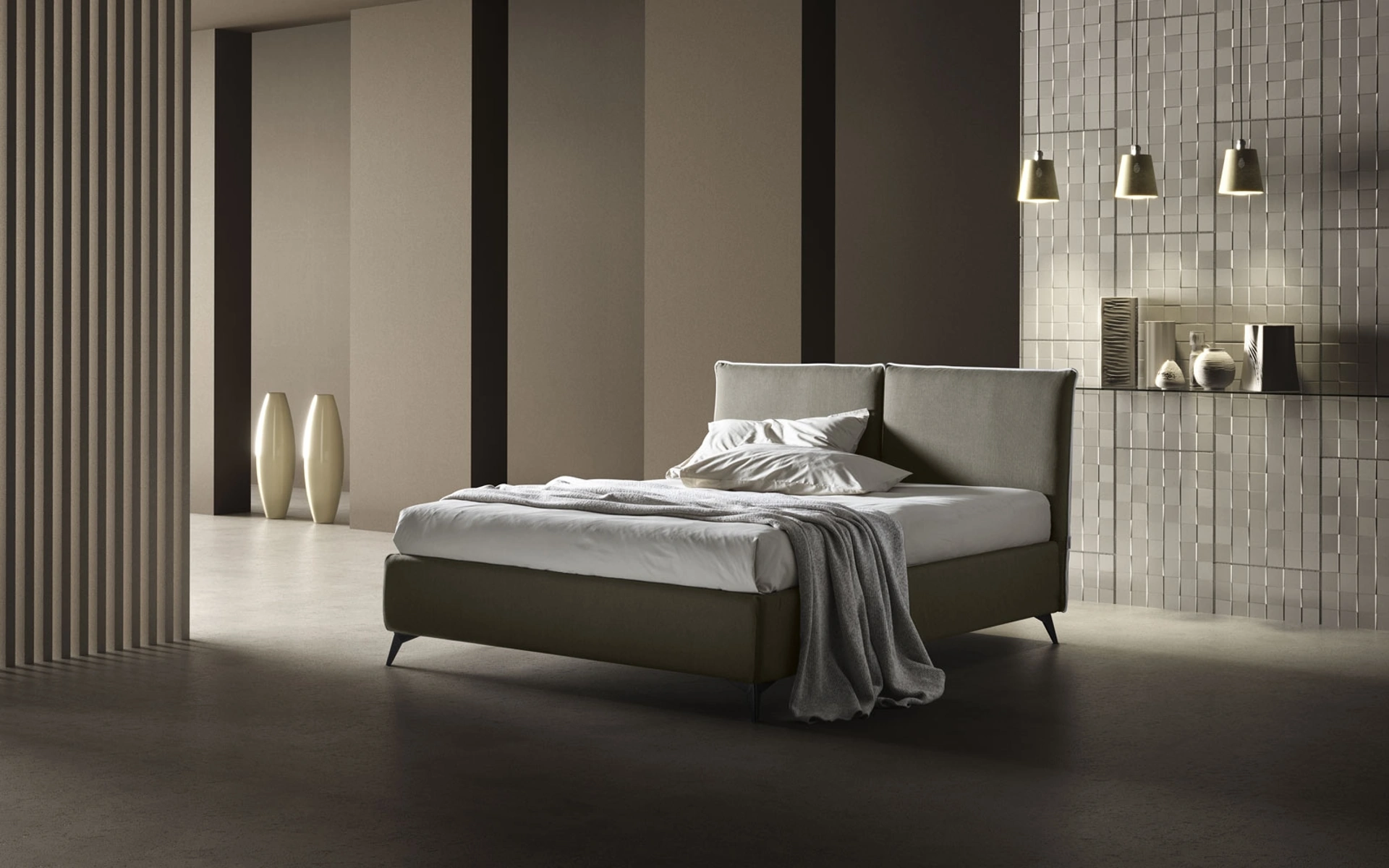 I Letti matrimoniali imbottiti della firma, leader nella produzione di Arredamento Casa per la zona notte, sono progettati per essere abbinati a mobili e oggetti accessori di ogni tipo, come armadi e comò, abat jour e piantane. Se vuoi una soluzione in tessuto, il modello visibile in foto è caratterizzato da materiali di prima scelta e linee decise, che invitano a trascorrere un riposo profondo e ristoratore. Durante l'acquisto della giusta tipologia di letto, valuta con cura le sue misure, le finiture, la forma e il suo stile rispetto al resto dell'arredo. Scegli cromie e texture e realizza il tuo concept d’arredo nella zona notte, progettandola proprio come l'hai sempre immaginata.
