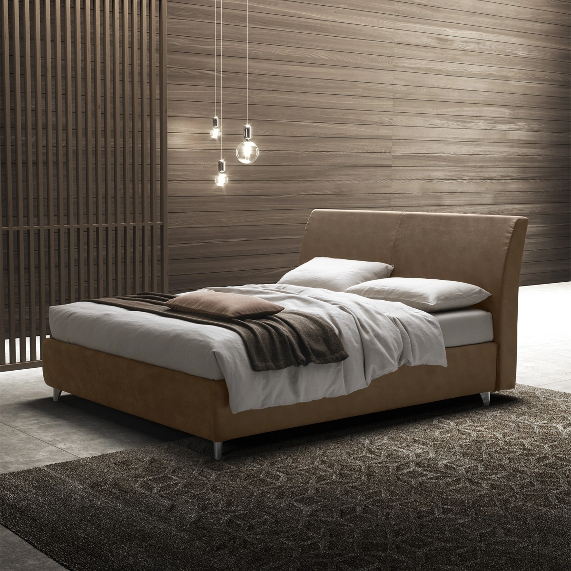 Scopri in negozio un ricco catalogo di Letti imbottiti, mobili ed elementi accessori per la zona notte delle migliori marche. Se desideri creare un'ambientazione intima e distensiva, il modello presente in foto fa al caso tuo: nella stanza del riposo dovrai creare un'ambientazione distensiva, per farti rigenerare le energie psichiche e fisiche tutte le notti. Qualità delle finiture e grande comfort sono gli ingredienti che distinguono tutti i prodotti della firma, tra cui anche il letto in pelle in foto. Se desideri arredare spazi moderni, ti aspettiamo per mostrarti la nostra linea di Arredamento Casa per realizzare il tuo progetto su misura.