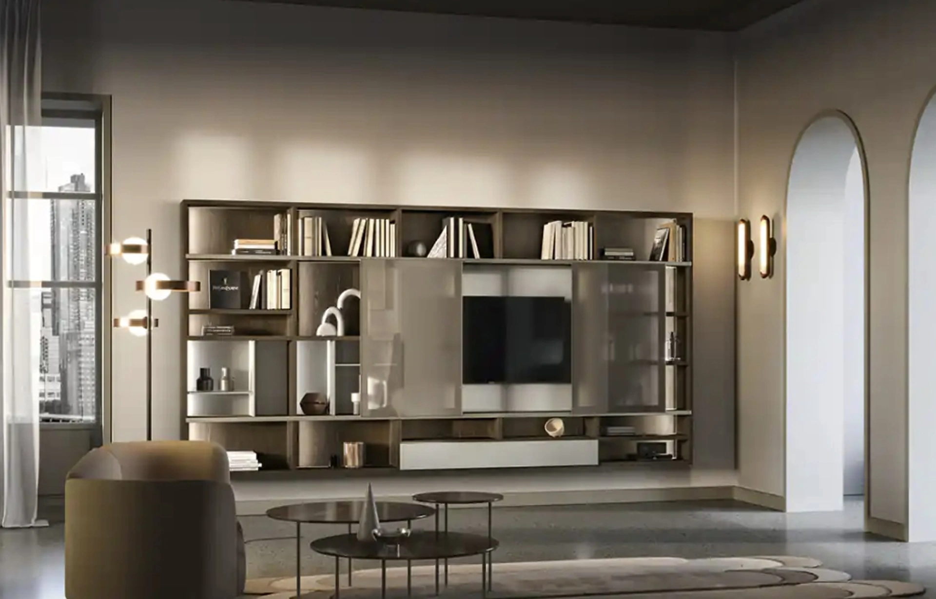 Organizzare il soggiorno non è difficile se si sceglie l'adeguata libreria per allestire il proprio spazio, ciò che conta è che sia capiente e gradevole. Mantenere il soggiorno in ordine non è il suo unico compito: con questa libreria potrai creare il progetto d'arredo che hai sempre voluto ottimizzando ogni spazio. In negozio ti aspettano i più preparati interior designers, pronti a illustrarti mobili ed elementi accessori belli e funzionali per i tuoi spazi. Scopri presso i migliori punti vendita di mobili le più esclusive Librerie a muro, tra cui anche quelle moderne in melaminico ideali per completare soggiorni di ogni genere.