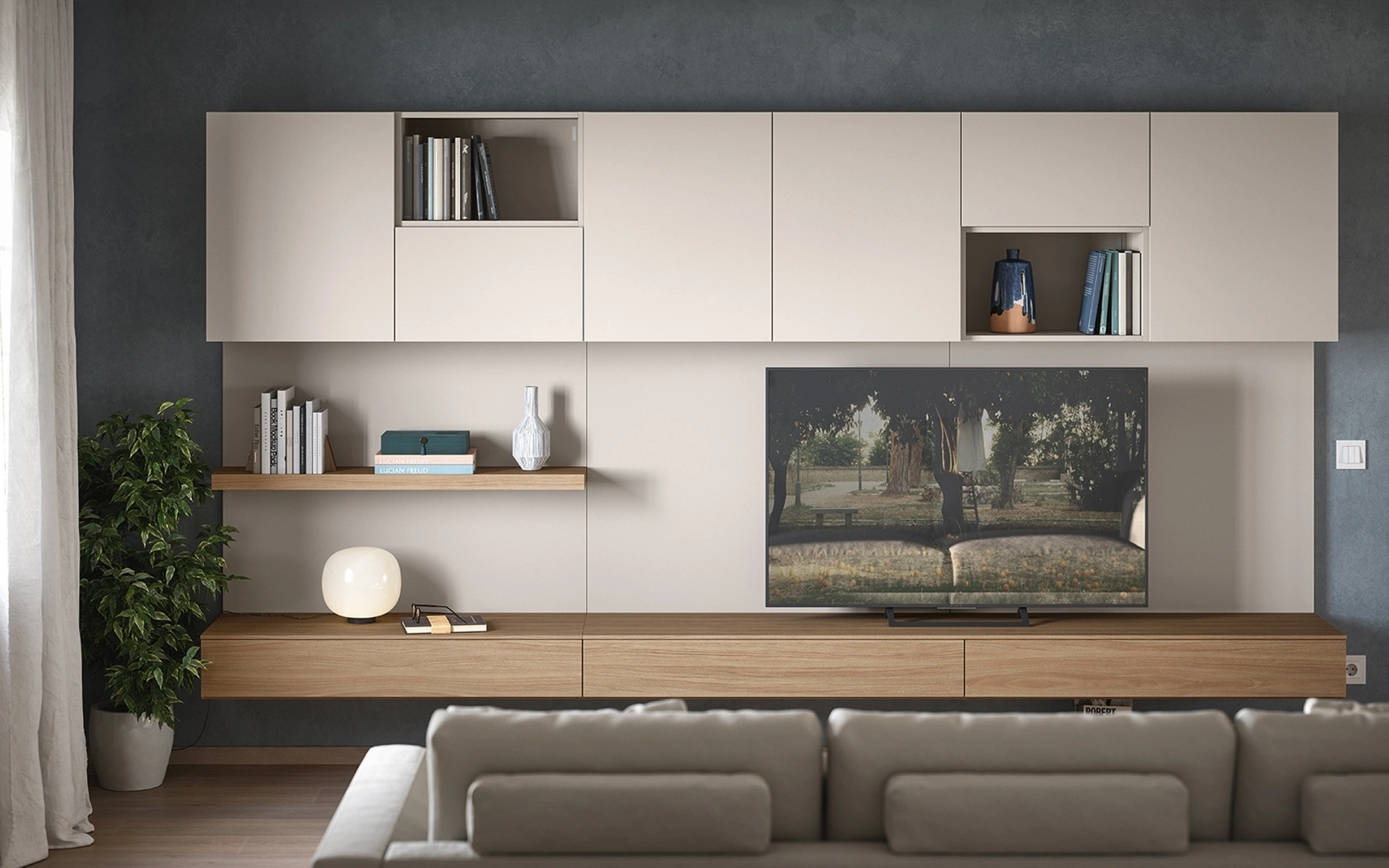 La Parete Attrezzata con base sospesa 06B di Cinquanta3 nell'immagine, realizzata in melaminico, risolve le più particolari esigenze abitative di stile e spazio senza rinunciare alla ricerca stilistica. Se cerchi mobili salvaspazio e realizzabili su misura per te, contattaci e ottieni informazioni sull'Arredamento Casa dei migliori brand. Un po’ librerie, un po’ mobili contenitori ed espositori: le Pareti Attrezzate sono ideali per sistemare uno spazio pratico e dinamico. Anche in un soggiorno non generoso, questo tipo di arredo riesce a ottimizzare gli spazi sfruttando bene ogni angolo e garantendo grandi doti di componibilità tipica delle soluzioni moderne.