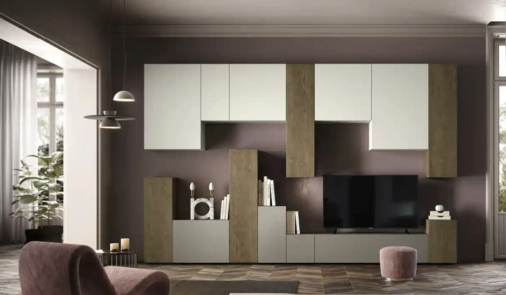 Anche in un soggiorno non troppo grande, questo tipo di arredo riesce a organizzare al meglio gli spazi usufruendo al meglio di ogni angolo e assicurando grandi doti di componibilità tipica delle soluzioni moderne. La Parete Attrezzata Kosmos KC109 di Moretti Compact Giorno Notte in foto, con finitura in laccato opaco, risolve le più personali problematiche abitative di spazio e stile senza rinunciare alla ricerca stilistica. Questa soluzione costituisce tutta la qualità che il brand assicura grazie a pluriennale competenza e grande dedizione nel settore dell'arredo e del design. Un po’ librerie, un po’ contenitori ed espositori: le Pareti Attrezzate sono ideali per arredare un luogo pratico e operativo.