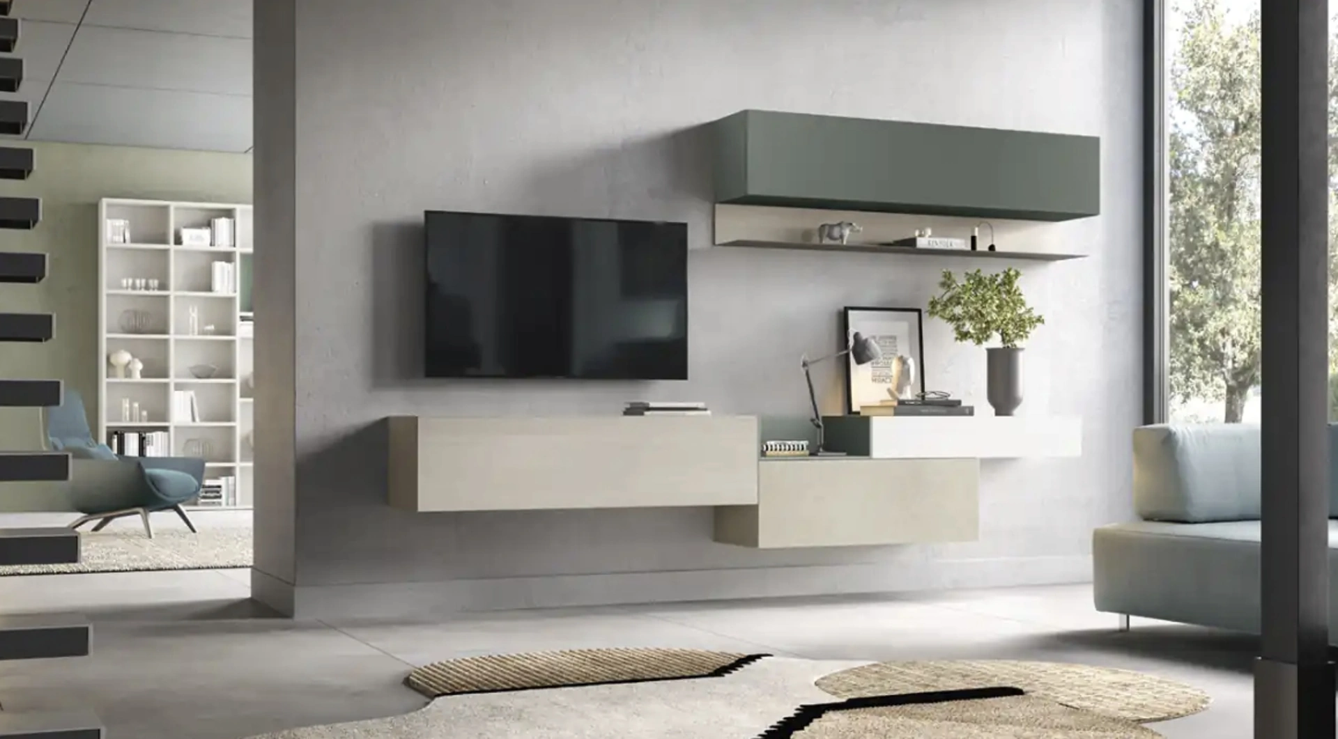 La Parete Attrezzata sospesa Kosmos KF102 di Moretti Compact Giorno Notte nella fotografia, con finitura in melaminico, risolve le più personali esigenze abitative di stile e spazio senza rinunciare alla ricerca stilistica. Questa proposta rappresenta tutta l'eccellenza che il marchio garantisce grazie a pluriennale esperienza e grande dedizione nel campo dell'arredo e del design. Anche in un living non troppo grande, questo tipo di arredo riesce a organizzare al meglio gli spazi usufruendo al meglio di ogni angolo e assicurando massima componibilità tipica delle soluzioni moderne. Un po’ librerie, un po’ mobili contenitori ed espositori: le Pareti Attrezzate sono ideali per arredare un luogo operativo e pratico.