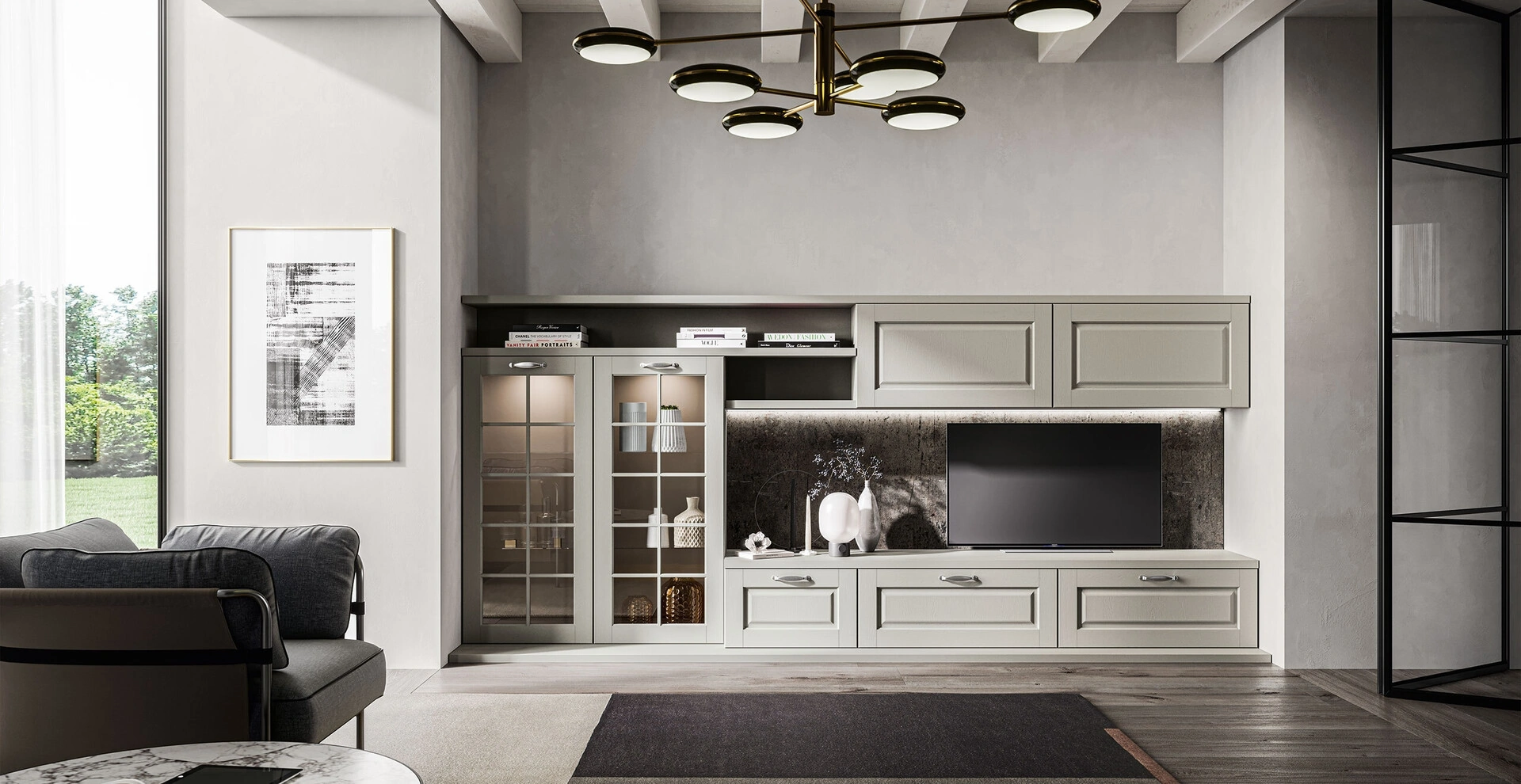 La Parete Attrezzata Living Asolo di Arredo3 nell'immagine, con finitura in legno, risolve le più personali problematiche abitative di spazio e stile senza rinunciare alla ricerca estetica. Se cerchi mobili salvaspazio e realizzabili su misura, contattaci e ottieni informazioni sull'Arredamento Casa dei migliori brand. Un po’ librerie, un po’ contenitori ed espositori: le Pareti Attrezzate sono ideali per organizzare un luogo operativo e pratico. Anche in un soggiorno non troppo grande, questo tipo di arredo riesce a organizzare al meglio gli spazi sfruttando bene ogni angolo e garantendo l'alta componibilità tipica delle soluzioni classiche.
