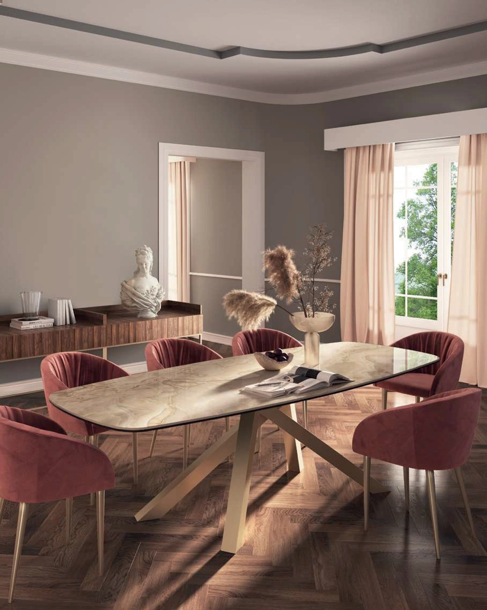 Se vuoi un tavolo da pranzo di alto contenuto estetico, contattaci e ricevi info e preventivi sul modello mostrato in foto. Tavolo Materia de Di Lazzaro: realizzato in materiali di prima scelta è caratterizzato dalle forme decise del top e da un basamento ricercato ed elegante. Un modello come quello nell'immagine, in abbinamento alle giuste sedie, saprà impreziosire il mood delle stanze domestiche dedicate in assoluto alla convivialità. Il noto e conosciuto brand Di Lazzaro, leader nella produzione di mobili in ceramica, ha scelto per la sua linea una vasta scelta di finiture, linee e tonalità.