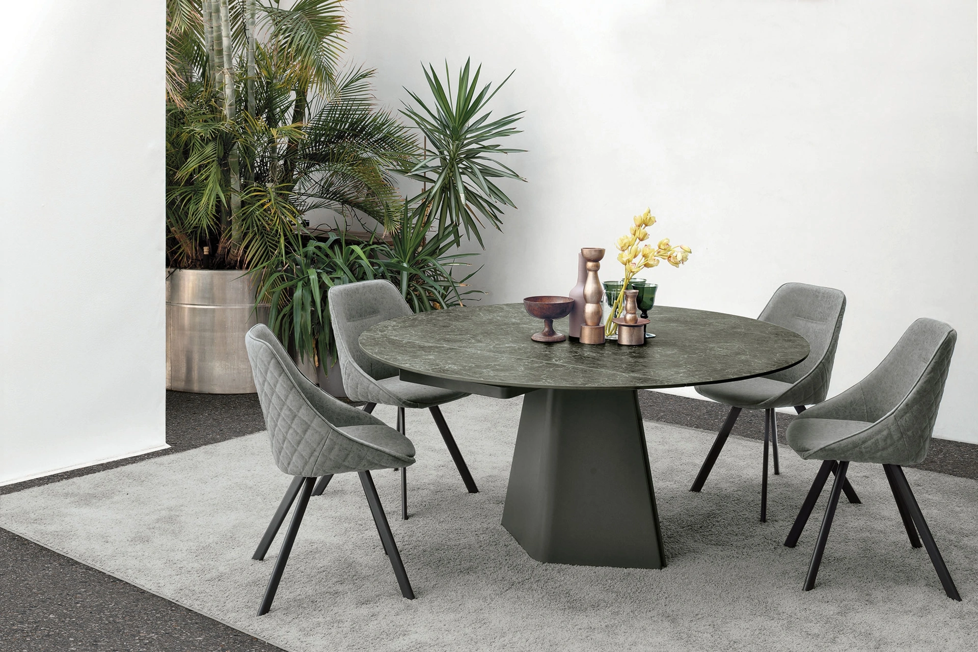 Contattaci per info e preventivi o trovi nel nostro punto vendita le varie più originali proposte da pranzo in gres di Target Point, esempio di tutta l'eccellenza assicurata dal marchio. Tavolo rotondo allungabile Tay di Target Point: con questo modello potrai arricchire spazi moderni assicurandoti componibilità su misura e la massima progettualità dei tavoli allungabili. Da noi potrai trovare una ricca gamma di mobili e oggetti accessori in gres dei migliori brand, ideali per completare i tuoi interni.