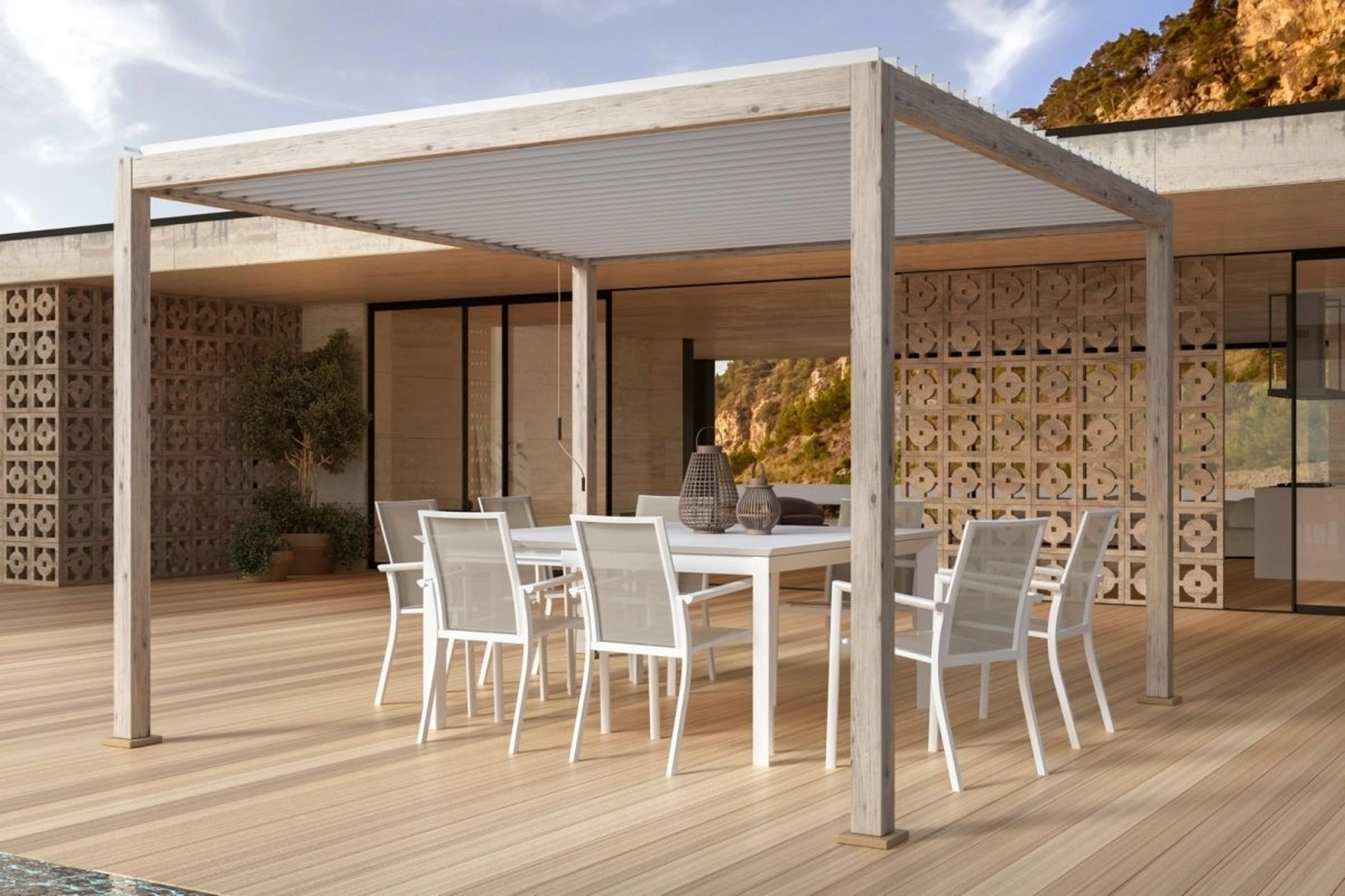 LaPergola Ocean Rustic Bianco di Bizzotto appartiene alla ricca offerta di soluzioni tecniche per lo spazio all'aperto del marchio, garanzia di qualità ed eccellenza nel campo. Bizzotto realizza Pergole a muro o autoportanti capaci di garantire sempre la contentezza dei clienti, per estetica e funzionalità. Chi ha un giardino sa che è una fortuna poterne fruire tutto l'anno, conversando con amici e parenti o gustandosi il paesaggio naturale. I giardini e i terrazzi divengono quasi altri ambienti di casa, da attrezzare con soluzioni di lunga durata e resistenti, per poterne godere tutto l'anno.